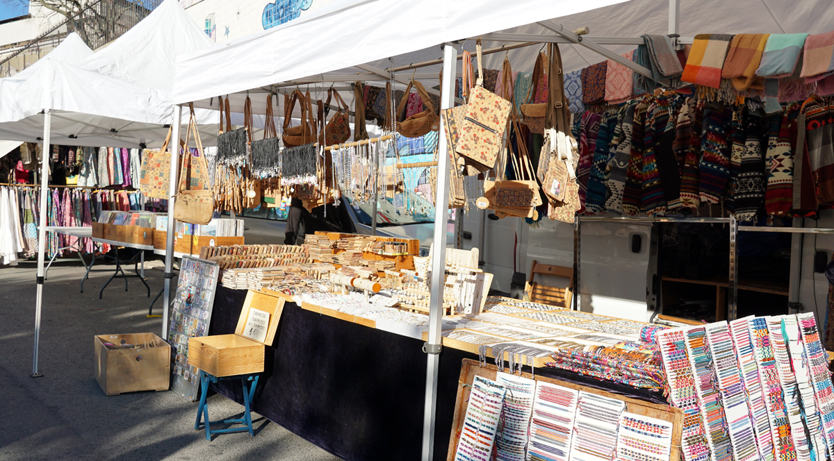 여러 천막을 지나가며 판매하는 물건들을 구경합니다.
