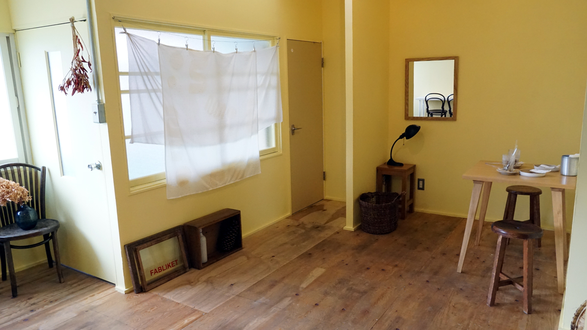나무 바닥과 연노란색 벽 덕분에 꽤 차분한 분위기가 연출되고 있어요.