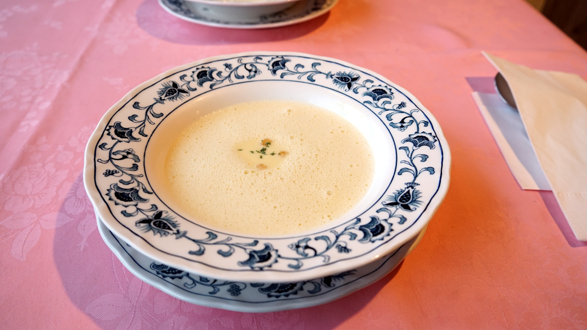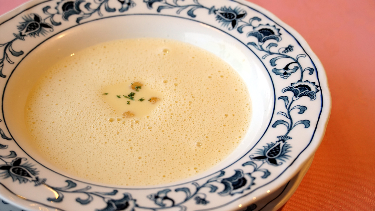주문을 하니 잠시 후 옥수수 수프가 나왔어요.