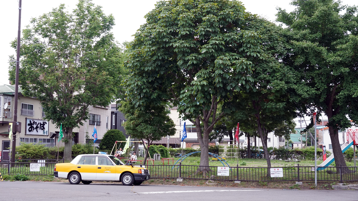 공원 앞 노란 택시